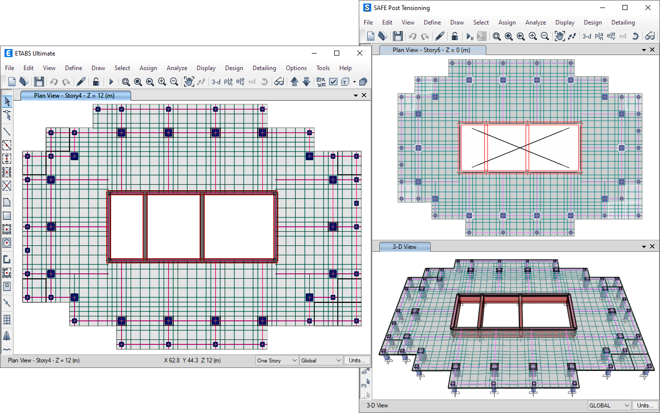 La importación de un modelo SAFE a ETABS ahora está soportada en un nivel de nivel o piso seleccionado por el usuario, con opciones avanzadas para fusionar geometría, definiciones de propiedades y asignaciones de cargas.